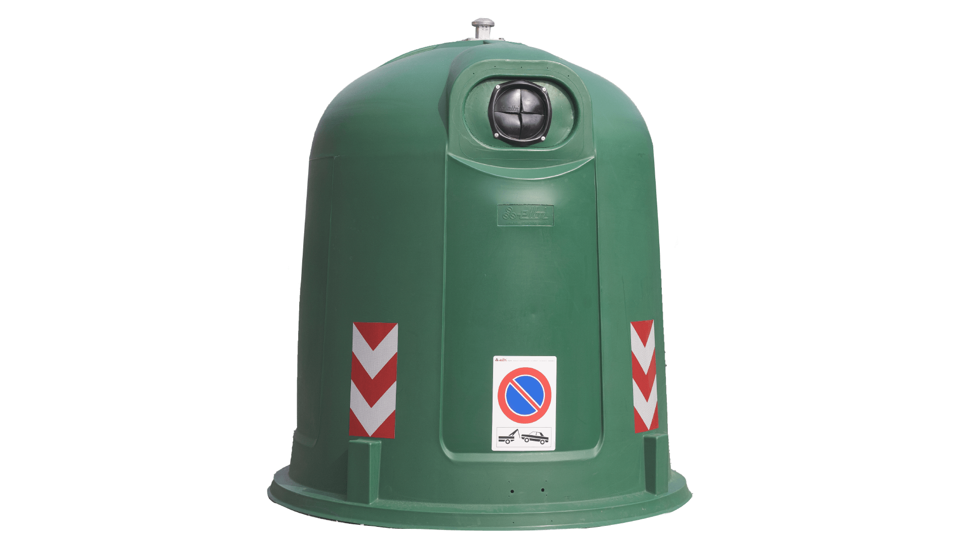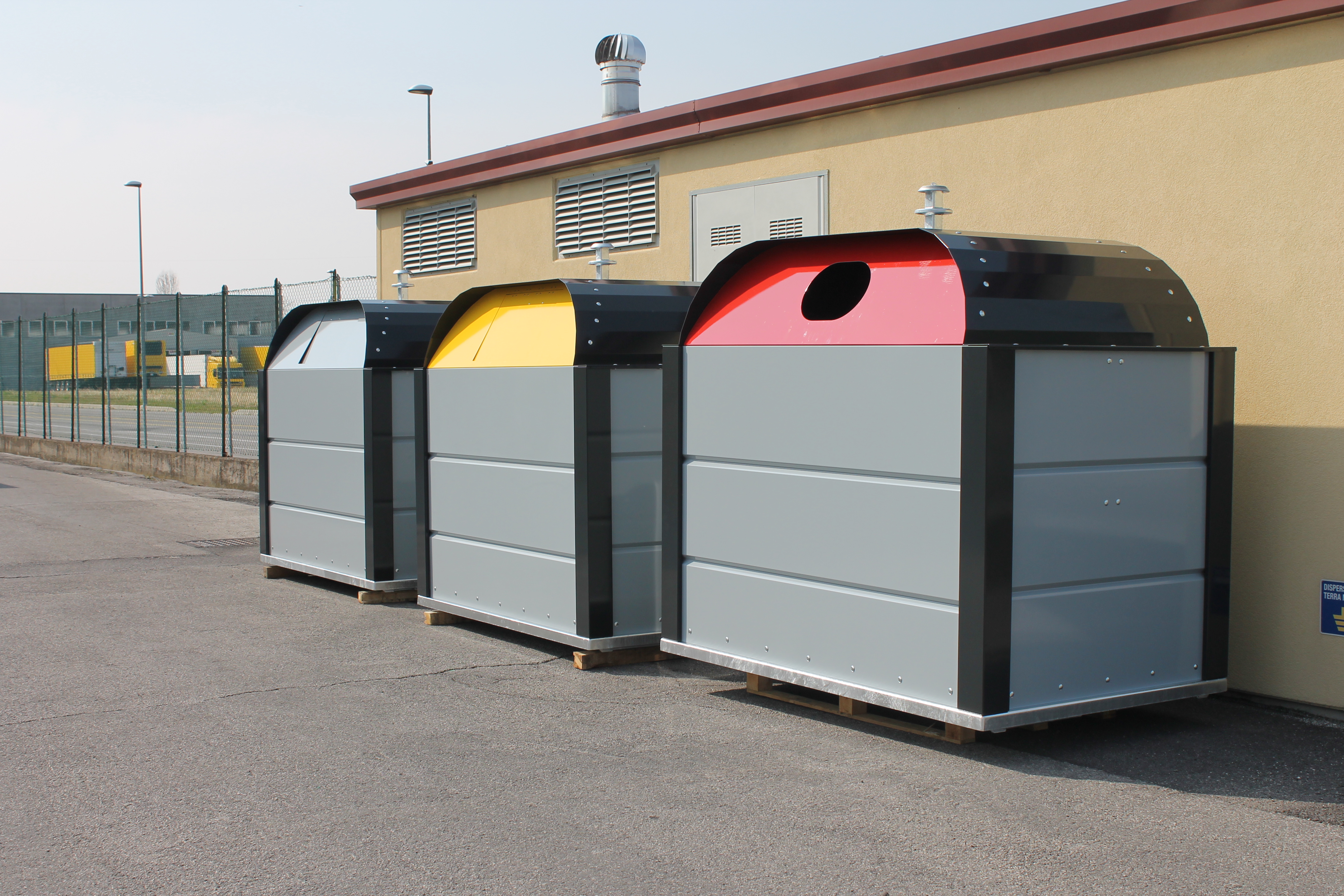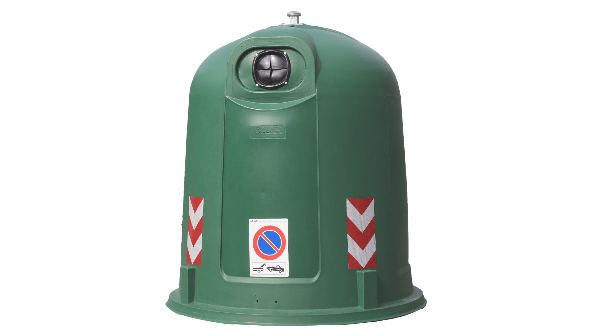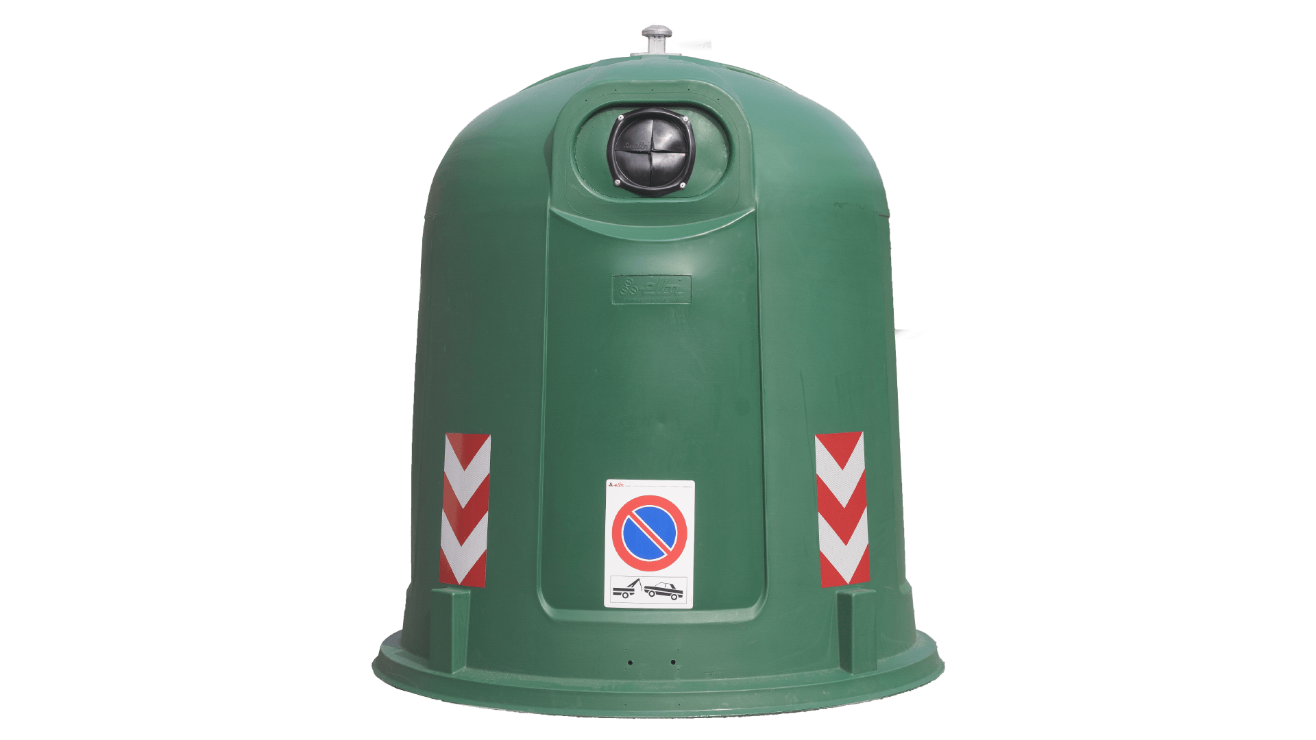 Vasta scelta di campane per rifiuti, di capienza e colori diversi. Per il sollevamento e lo svuotamento, tutte le campane possono essere fornite di un apposito doppio gancio, gancio automatico KINSHOFER o gancio NORD ENGINEERING.